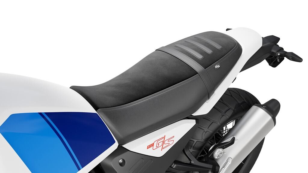 Die neue BMW R 12 G/S ist serienmäßig mit einer flachen Solositzbank (Sitzhöhe Serie mit 17“ Hinterrad: 860 mm / Sitzhöhe im Enduro Paket Pro mit 18“ Hinterrad: 875 mm) ausgestattet. Flach und gerade gestaltet, bietet sie ideale Voraussetzungen zum Enduro fahren – auch in stehender Fahrhaltung. In der Sonderausstattung „Soziuspaket“ ist die Sitzbank für zwei Personen (Sitzhöhe Serie mit 17“ Hinterrad: 860 mm / Sitzhöhe im Enduro Paket Pro mit 18“ Hinterrad: 875 mm) ausgeführt. In der Sonderausstattung „Rallyesitzbank“ ist die Sitzhöhe für den Fahrer um 20 mm angehoben (Sitzhöhe Serie mit 17“ Hinterrad: 880 mm / Sitzhöhe im Enduro Paket Pro mit 18“ Hinterrad: 895 mm). Im Serienumfang beinhaltet die neue R 12 G/S zwei praktische Stahlösen am Heckrahmen, die als Zurrpunkte dienen.